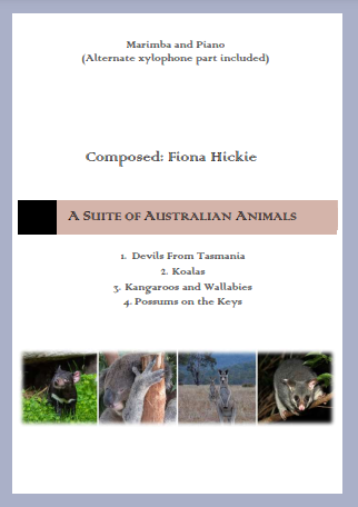 A musical suite for marimba (or xylophone) and piano representing 4 well known Australian animals. Included is a score, marimba and xylophone part